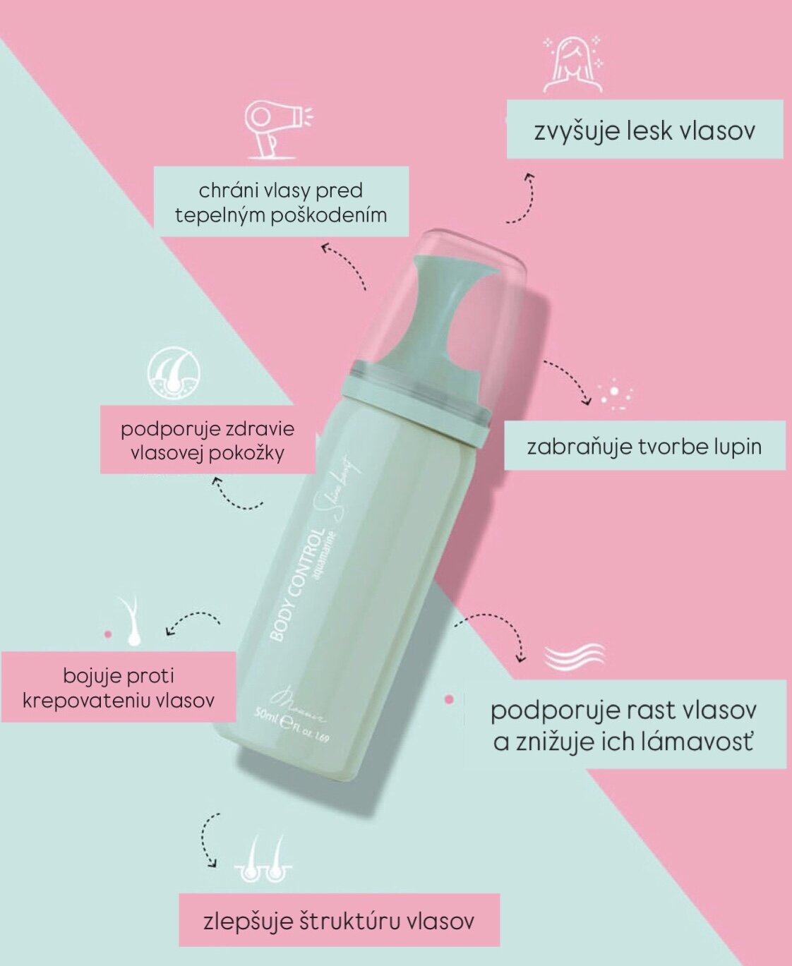 Táto novinka v podobe penového ošetrenia obsahuje tri typy olejov: sójový olej, olej z pšeničných klíčkov a slnečnicový olej. Všetky tieto oleje obsahujú vitamín E, životne dôležitú živinu pre udržanie zdravej pokožky hlavy. Vitamín E tiež zohráva kľúčovú úlohu pri posilňovaní a hydratácii vlasových korienkov, zvyšuje hustotu vlasov a chráni ich pred škodlivými účinkami slnečného tepla. Okrem toho táto liečba obsahuje degradovaný keratín, prírodný proteín, ktorý sa vyskytuje vo vlasoch. Tento prírodný proteín účinne minimalizuje krepovatenie vlasov, zachováva hrúbku vlasov a dodáva vlasom hladkosť a lesk. Ošetrenie "Shine Boost Body Control" od Mounir Products je dostupné v štyroch podmanivých farbách: akvamarínová, ružová, fialová a marhuľová.